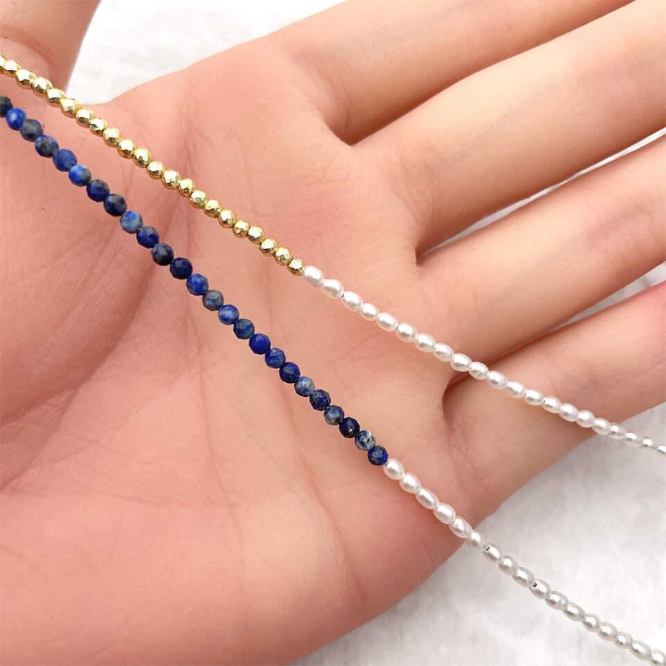 本真珠とラピスラズリのロングネックレス 80cm~120cm 極小 淡水パール 2mm 天然石 小粒 マンテル