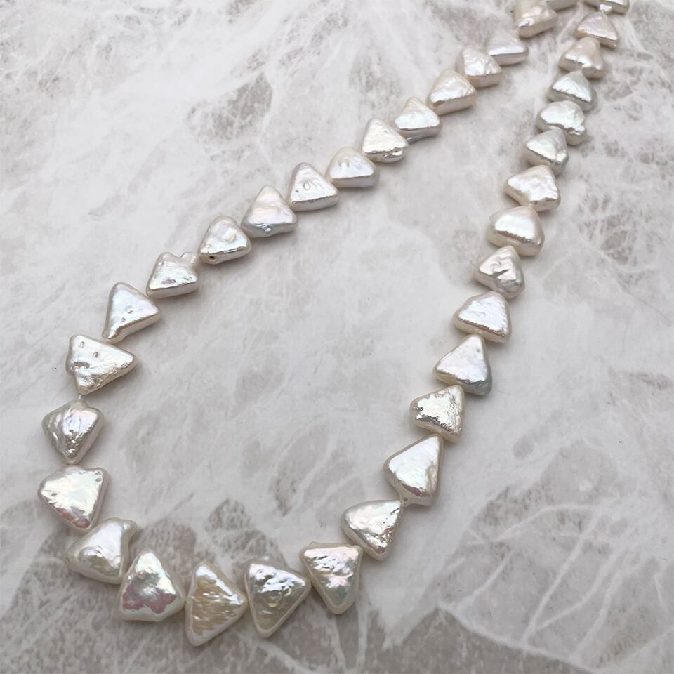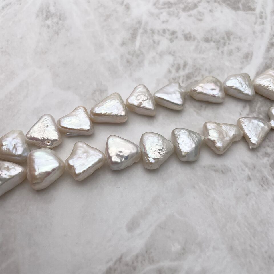 【1点限定】40cm 淡水パール 真珠 トライアングル 三角 バロック 10~12mm 中粒~大粒 ホワイト系