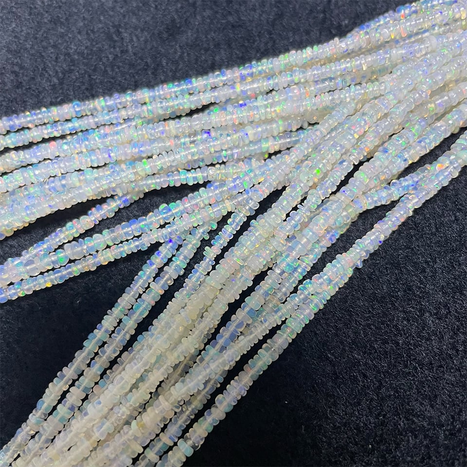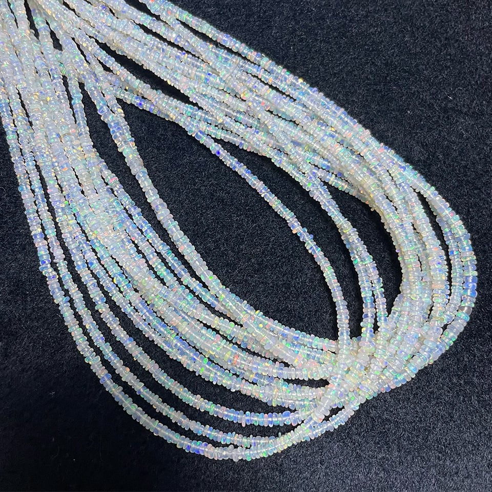 エチオピア産プレシャスオパール 宝石質 ロンデル 遊色効果 天然石 3mm 4mm 2mm極小粒 19cm st0001 ハンドメイド 素材 パーツ ビーズ ルース