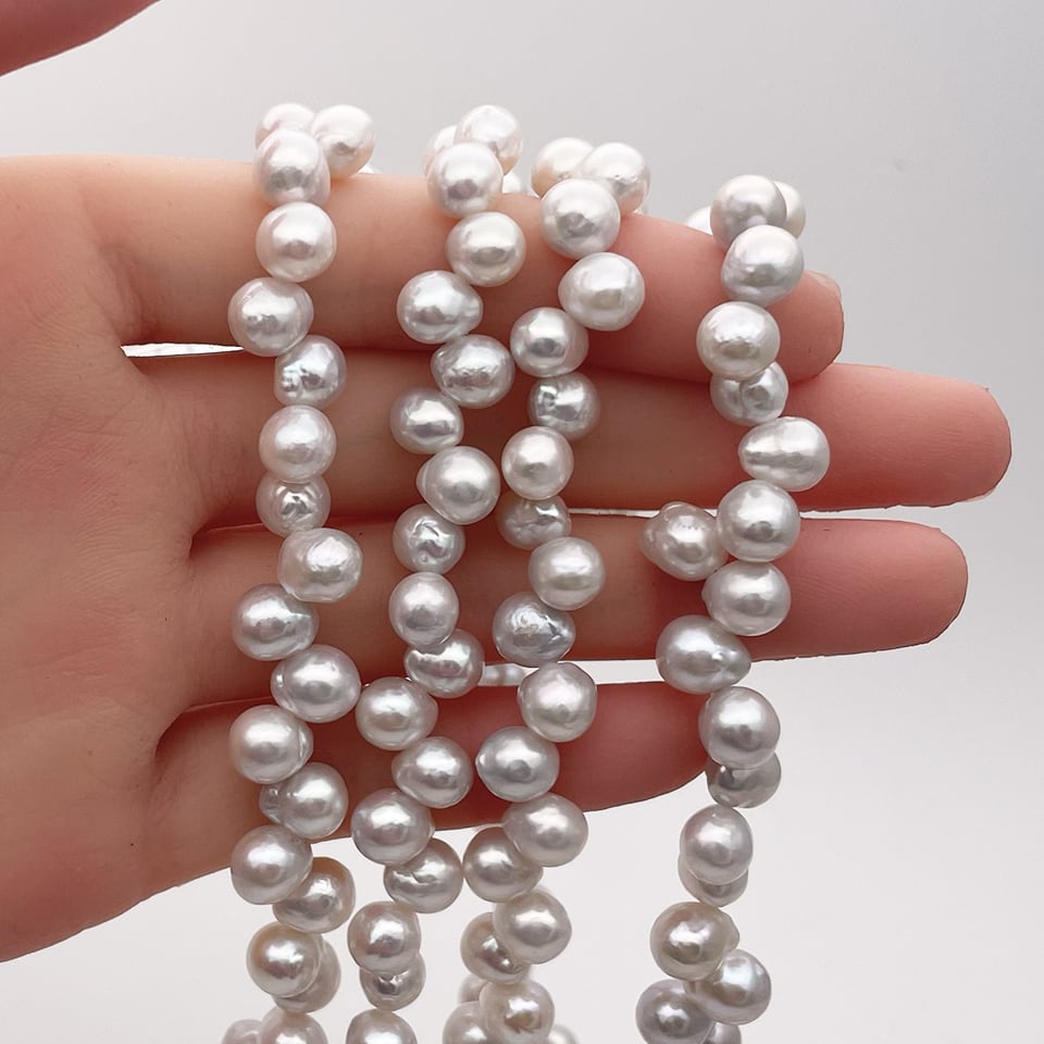 淡水パール 真珠 クレオ穴 有核 バロック セミラウンド 雫 ドロップ 7mm 8mm 中粒 19cm tp0021 ハンドメイド 素材 パーツ ルース ビーズ