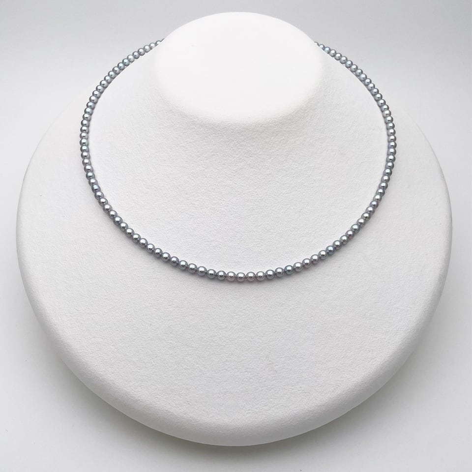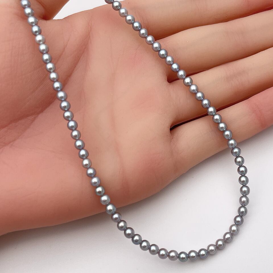 【極み輝】3点限り 本真珠パールネックレス 3mm ラウンド セミラウンド 淡水 極小 小粒 シルバーグレー系【ktn004】