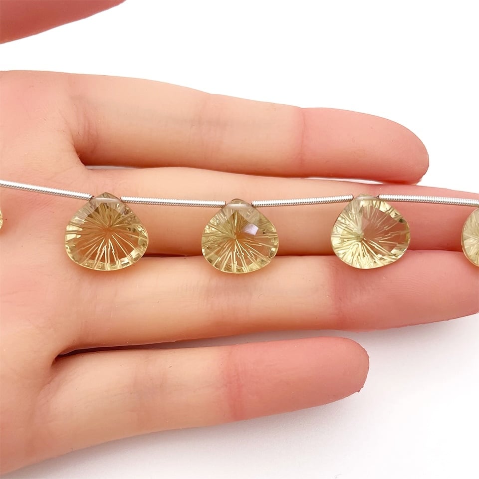 ビアクォーツ 1個 ハンドカット 水晶 クレオ穴 透明 ウィスキー イエロー ルース 13mm*14mm st0009 ハンドメイド 素材 パーツ ビーズ