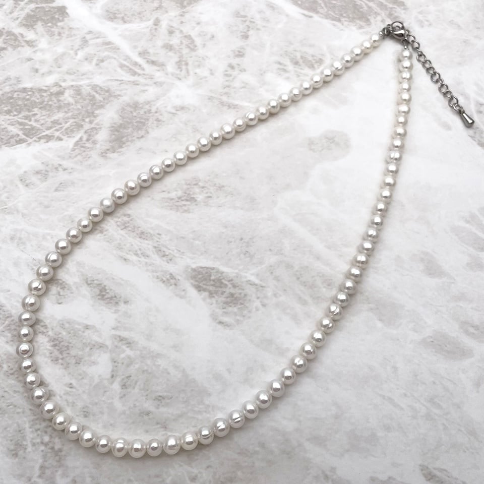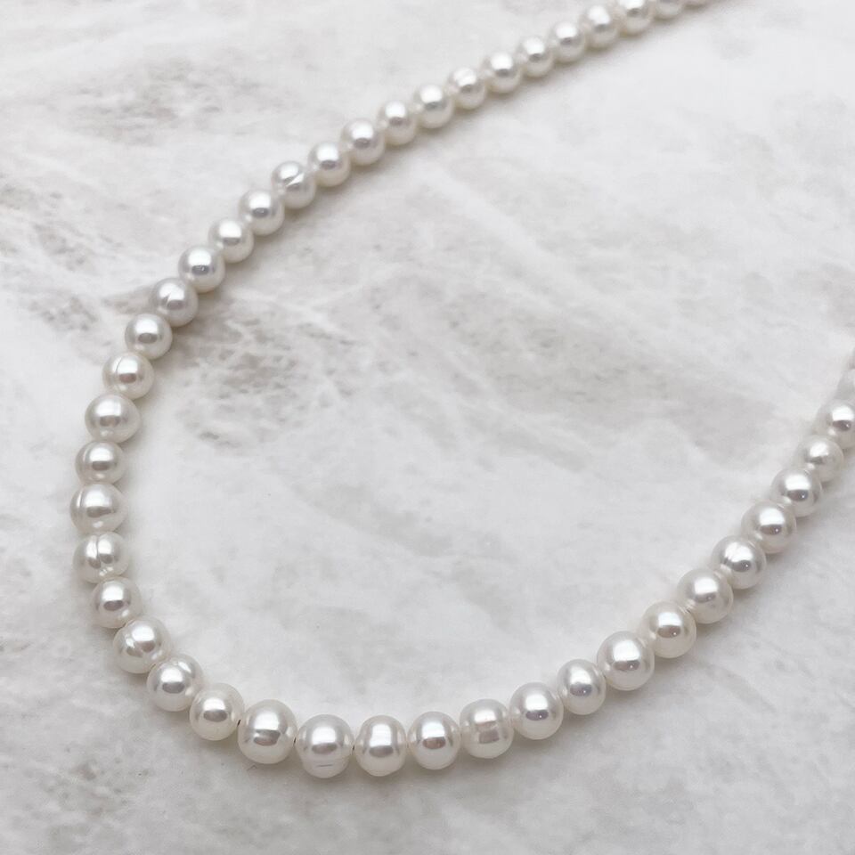 可愛らしいサイズ感のセミラウンド淡水パールネックレスです。