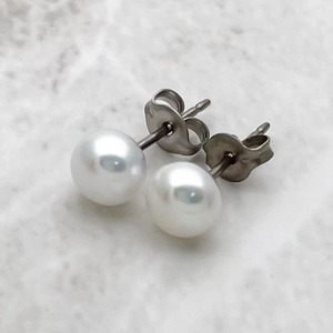 本真珠のスタッドピアス/イヤリング 淡水パール チタン SV925 小粒 6mm 金属アレルギー 結婚 卒入学式 春