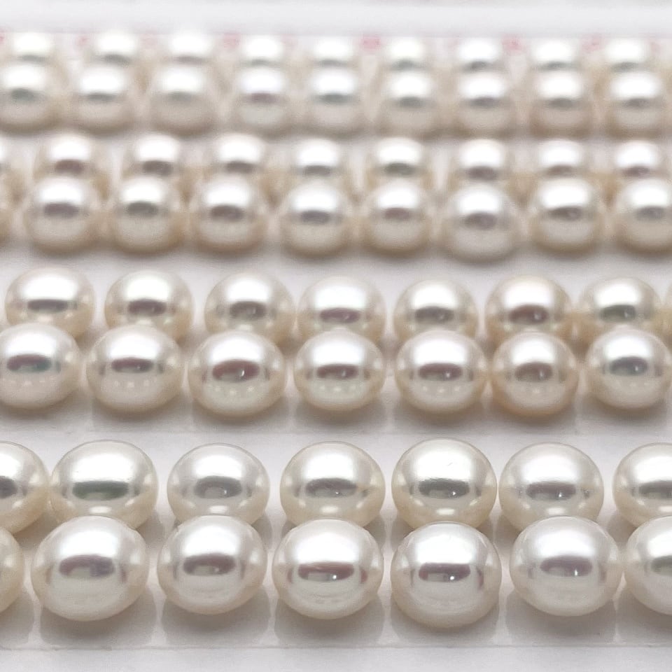 自然の中で育まれたパールのため、若干の傷がある場合もありますが、正面は比較的綺麗です。また、真円ではありませんが、小さめのボタン型なので肌馴染みが良く正面からはラウンドに見えます。