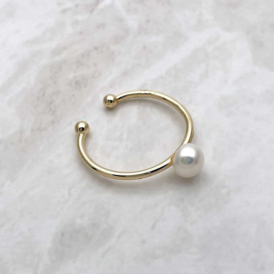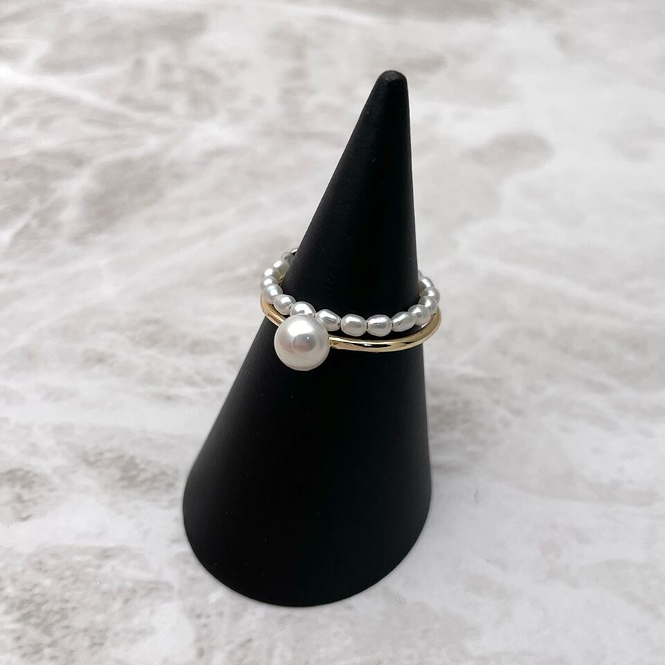 照り照り淡水パールの14kgfリング ボタン型 6mm 小粒 真珠 フリーサイズ ピンキー サム ミドル インデックス