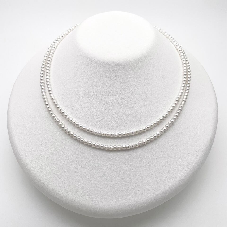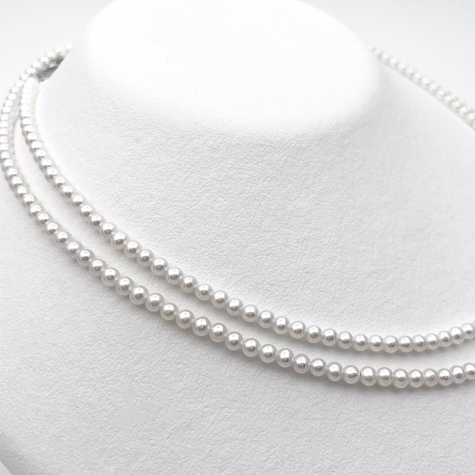 高品質でとっても小さなラウンド本真珠のロングネックレスです。