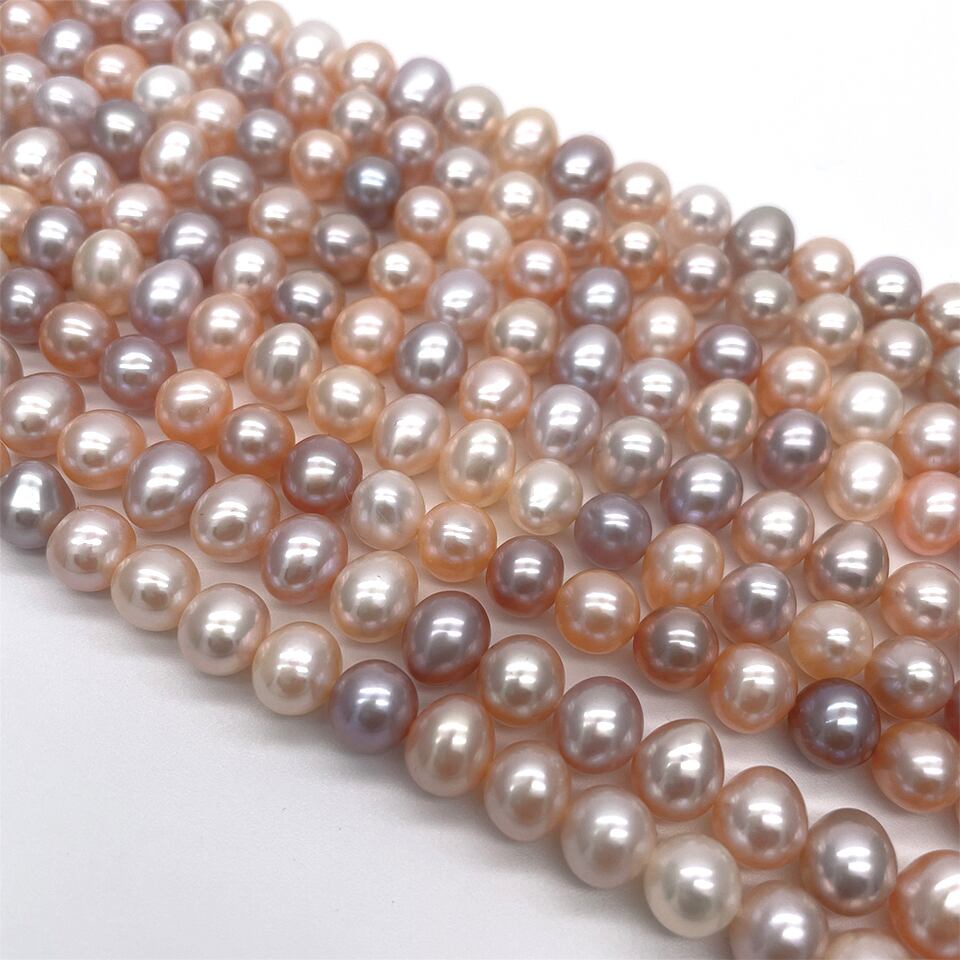 淡水パール 連 40cm ポテト マルチカラー ナチュラルカラー 8.5~9mm*6.5~7.5mm パーツ 材料 真珠