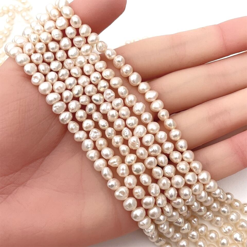 近年高騰している5~6mm前後の小粒の真珠で贅沢に組み上げています。輝りがしっかりと感じられる良質なバロックパールです。