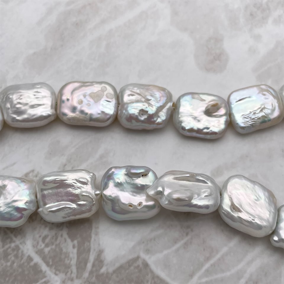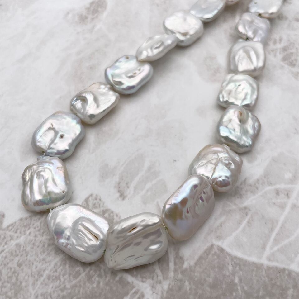 【訳あり】連40cm 大粒 レクタングル バロックパール 16~19mm*14mm 淡水真珠 長方形 四角