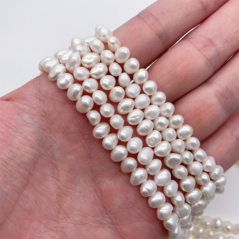 淡水パール 連40cm 真珠 横長バロック 5~6mm*6.5~8mm スノーホワイト系 白ボケあり