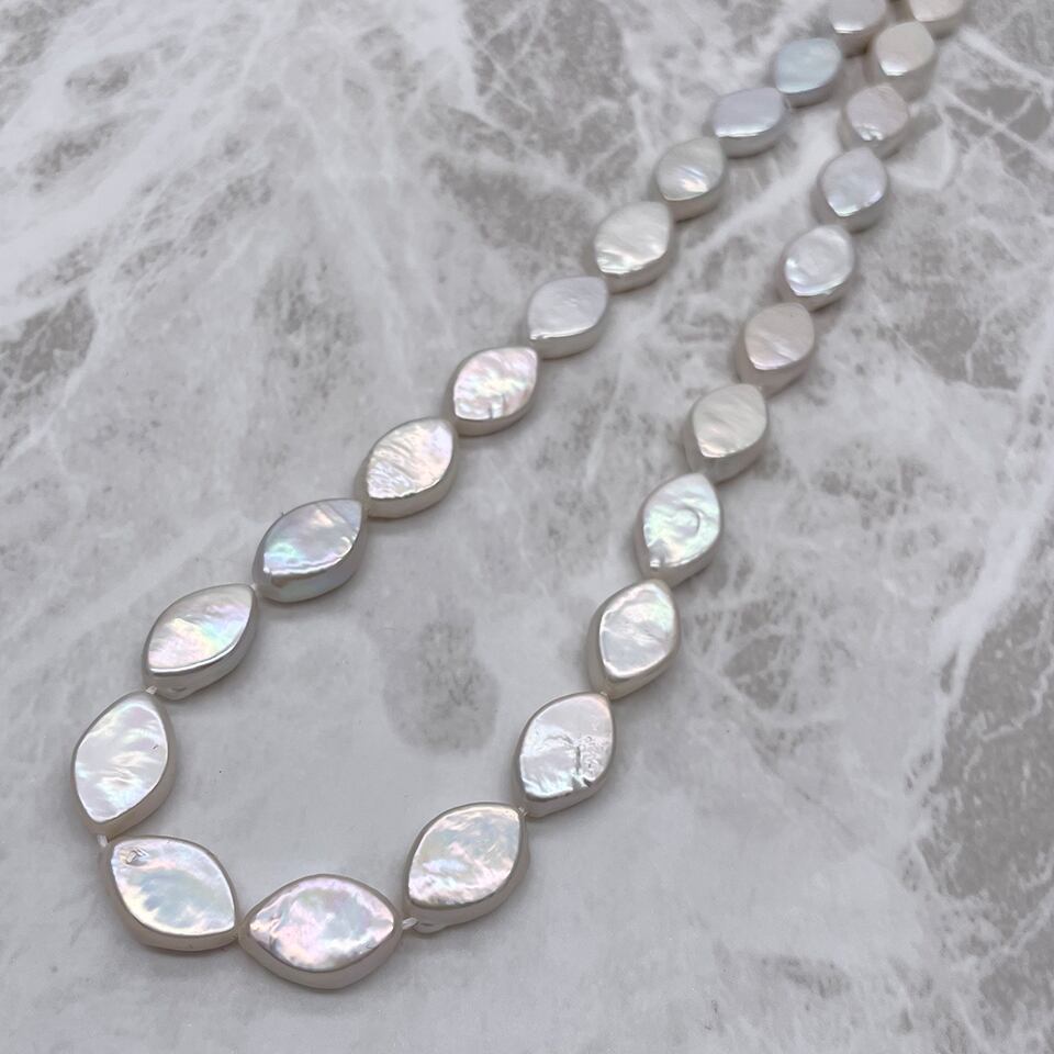 オーバル淡水パール 2粒 バロック 本真珠 ペア 14~15mm*9~9.5mm 干渉色 楕円 葉っぱ リーフ