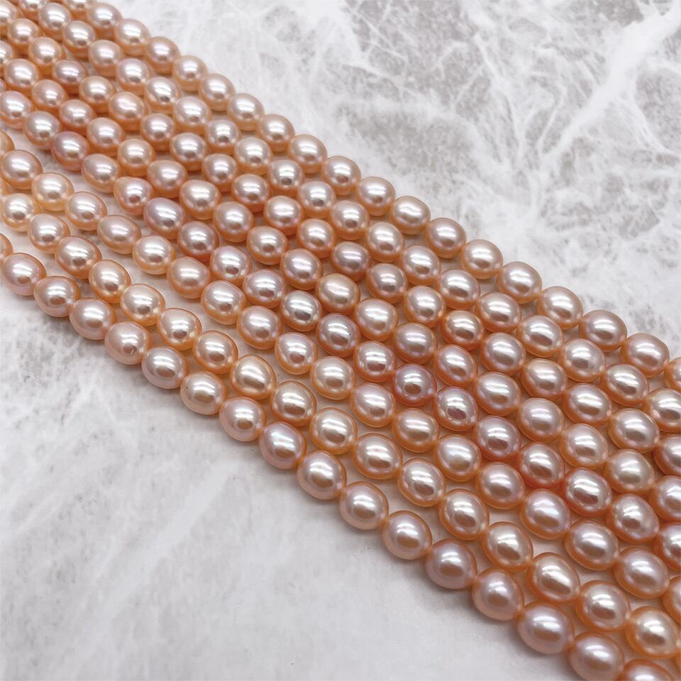 艶々 セミラウンド淡水パール 連40cm ライス 本真珠 7mm*6mm 雫 しずく オレンジ系