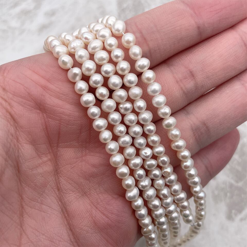 半連20cm 淡水パール ポテト 小粒 バロック 変形 本真珠 4~4.5mm*5~5.5mm