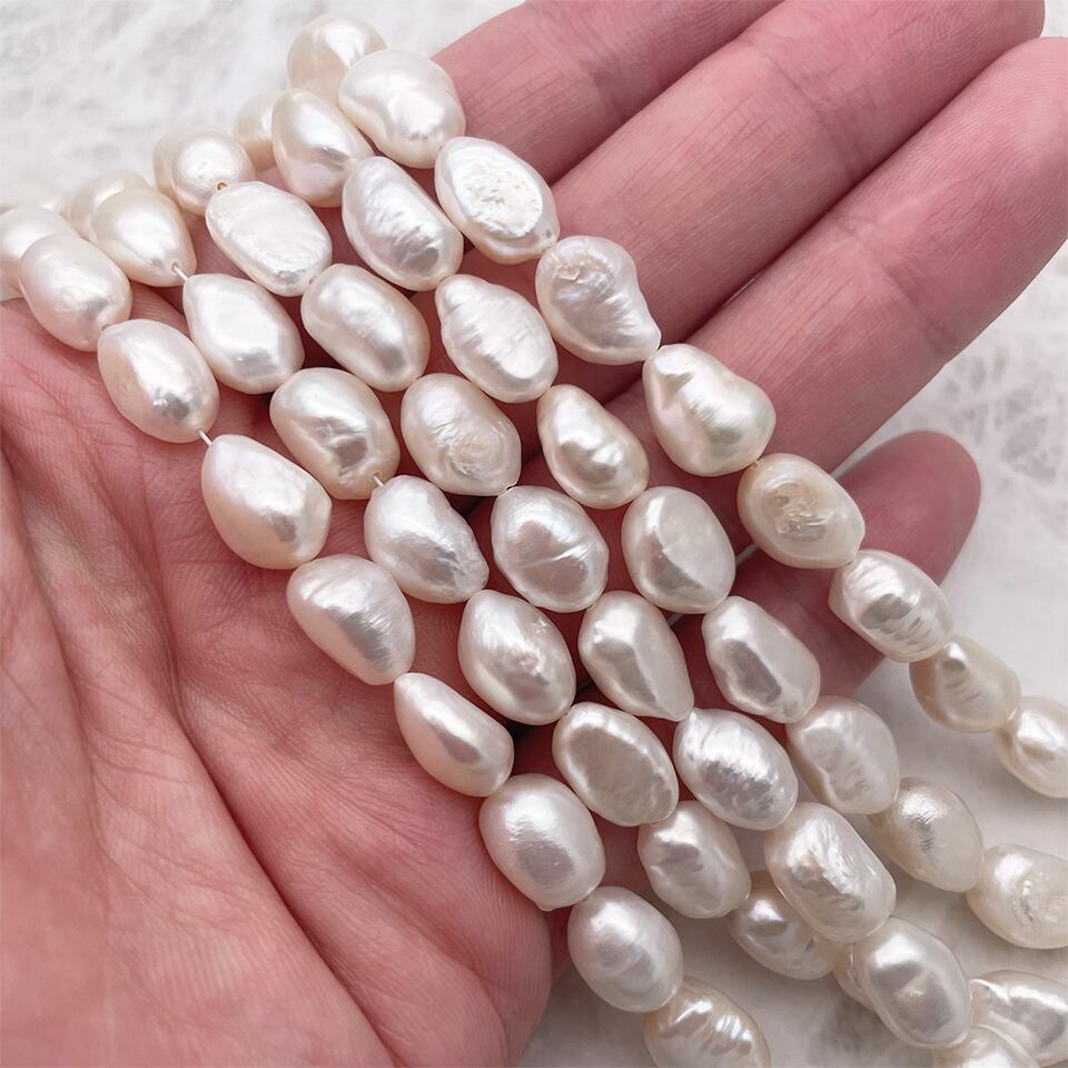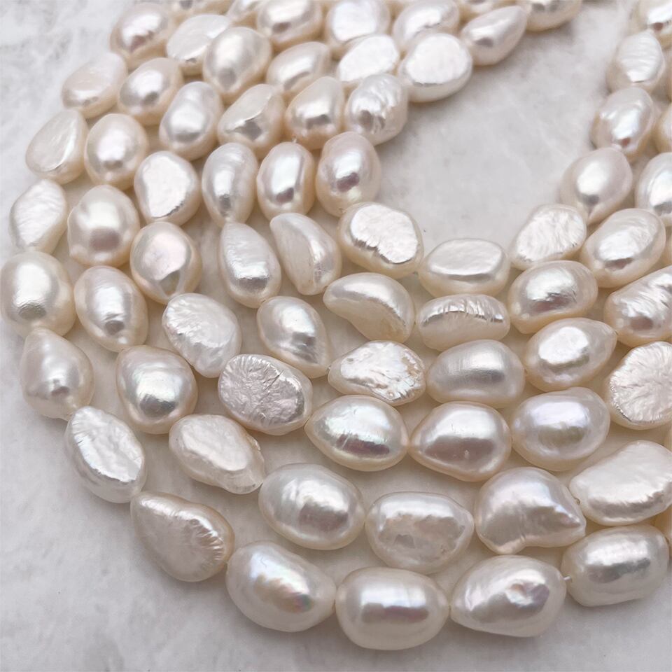半連20cm 定番バロック淡水パール 12~13mm*8.5~10mm フラット ボタン 大粒 本真珠