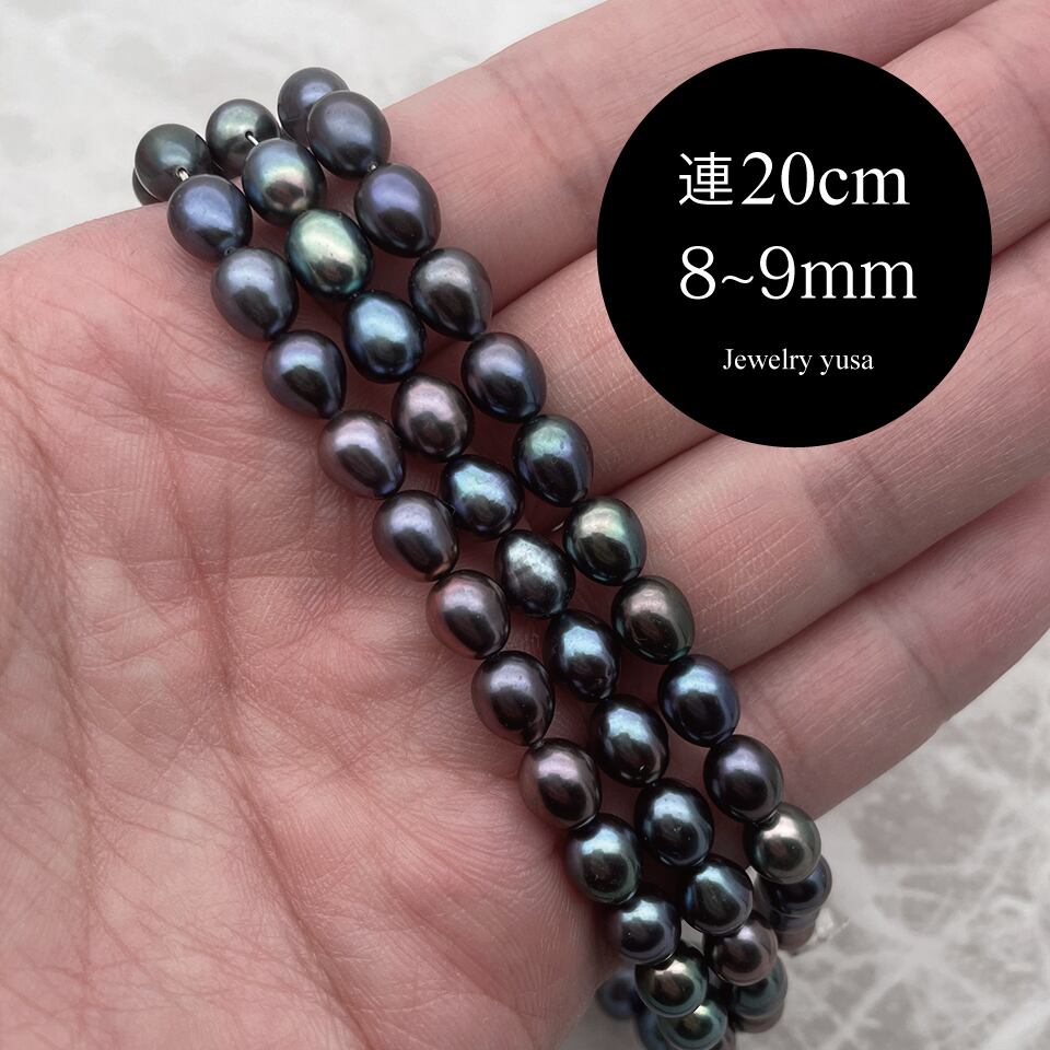 半連20cm 艶々淡水パール 本真珠 ライス しずく マルチカラー 8~9mm*6~7mm ダークカラー
