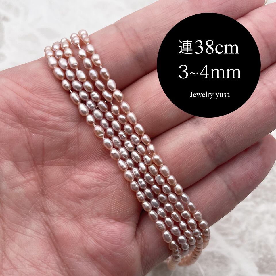 連38cm 極小 淡水パール バロック ライス ピンクパープル系 本真珠 3~4mm*2.5~3mm 小粒 ハンドメイド 素材 パーツ