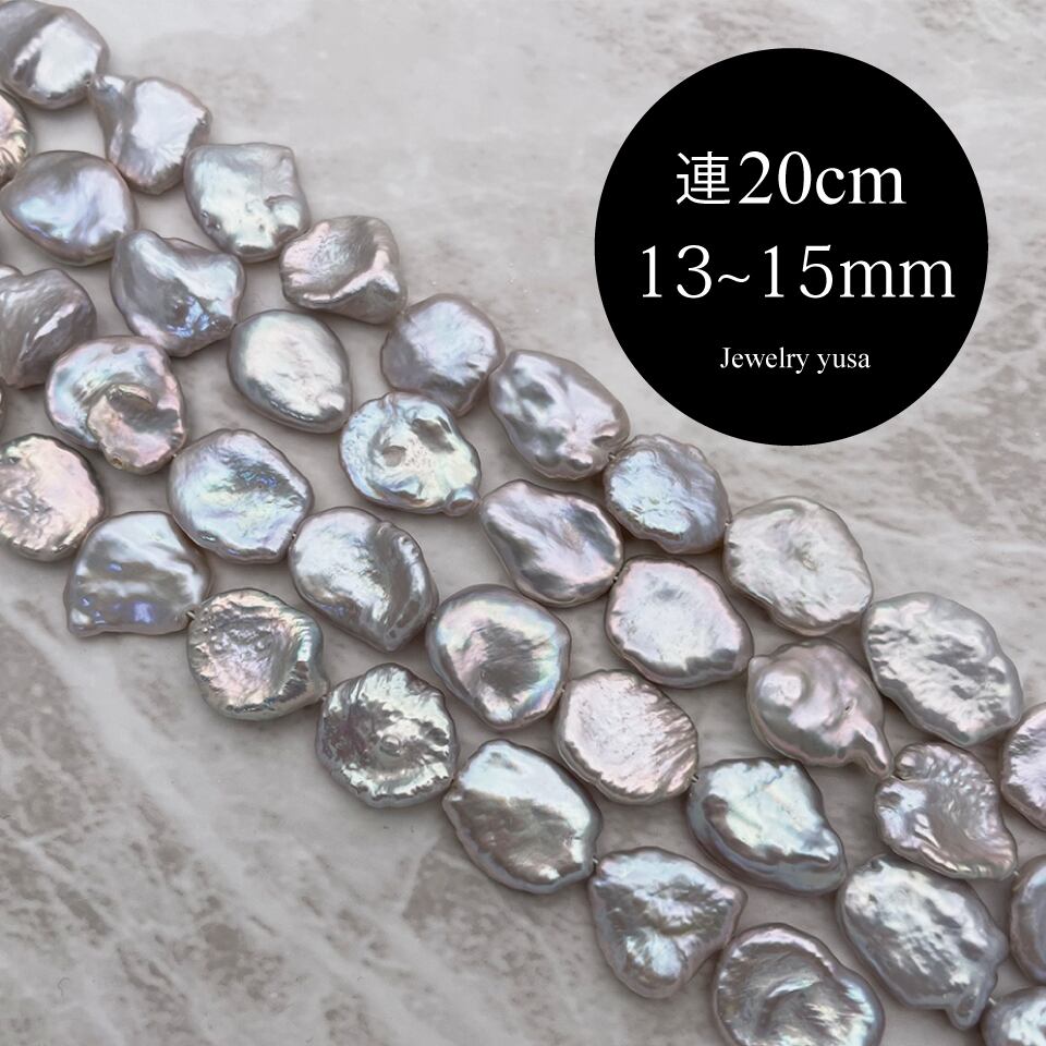 半連20cm 大粒 花びらケシ 淡水パール バロック 真珠 13~15mm*10~12mm メタリック シルバーグレー ハンドメイド 素材 パーツ