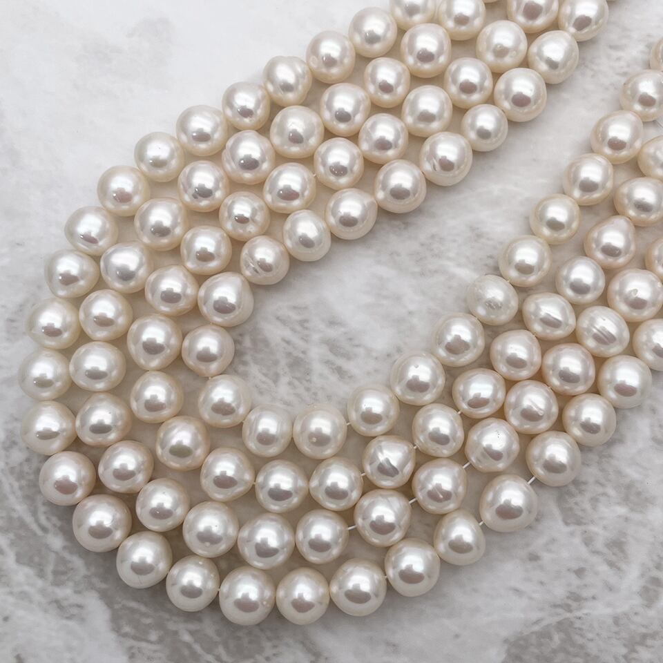 半連20cm 艶々 淡水パール セミラウンド バロック ロンデル 本真珠 6~7.5mm*6~7mm 変形 ハンドメイド 素材 パーツ ビーズ
