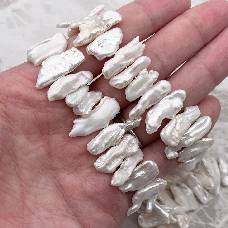 半連20cm 淡水パール 本真珠 びわ バロック スティック 変形 8~11mm*14~26mm ホワイト系 ハンドメイド 素材 パーツ ビーズ