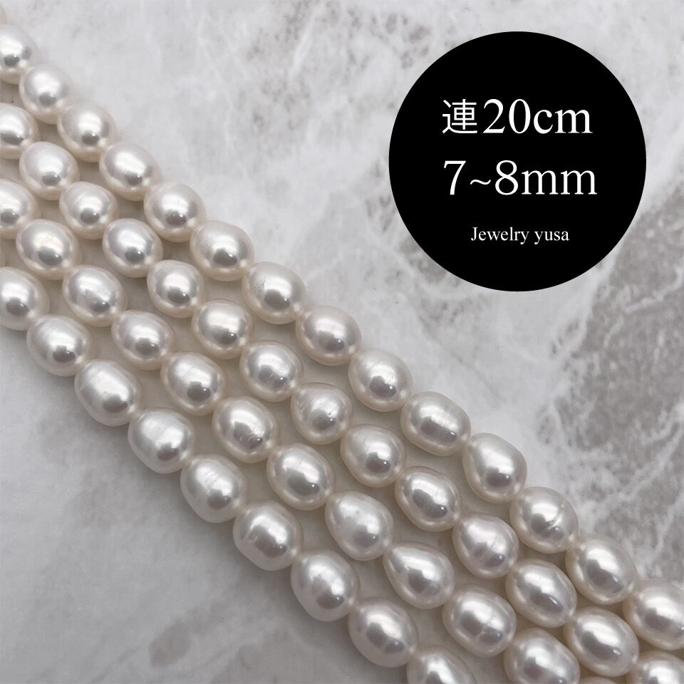 淡水パール 真珠 ライス 雫 しずく ドロップ 小粒 中粒 ホワイト系 半連20cm 7~8mm*6mm ハンドメイド 素材 パーツ ビーズ diy